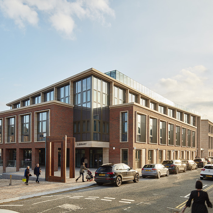 The redevelopment centres on social and healthcare integration, where it incorporates a new library based on the ground floor, along with a pharmacy and café.