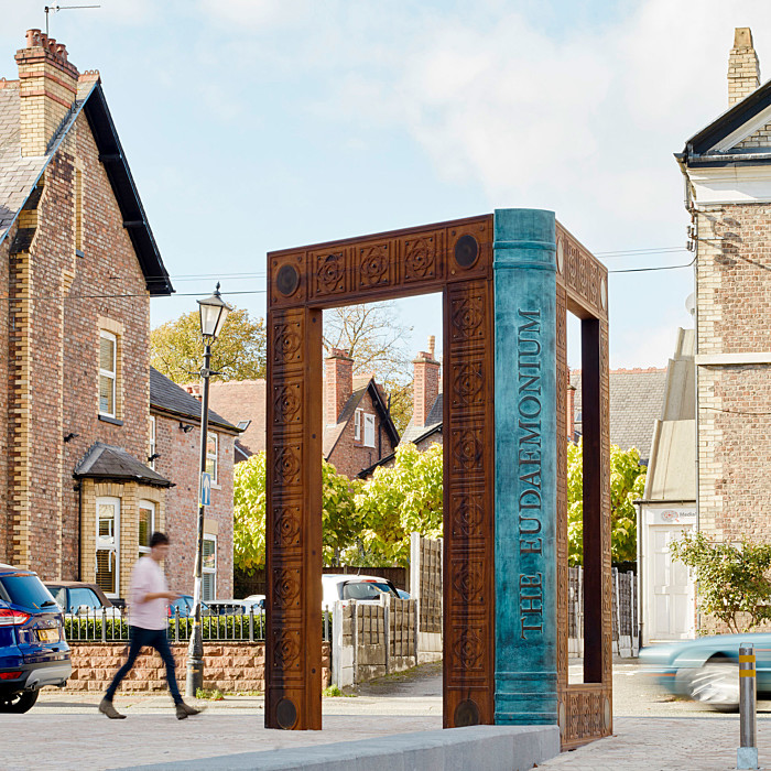 A sculpture referencing both the library and healthcare functions of the building forms a focal point of the scheme.