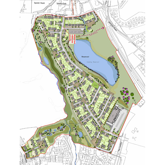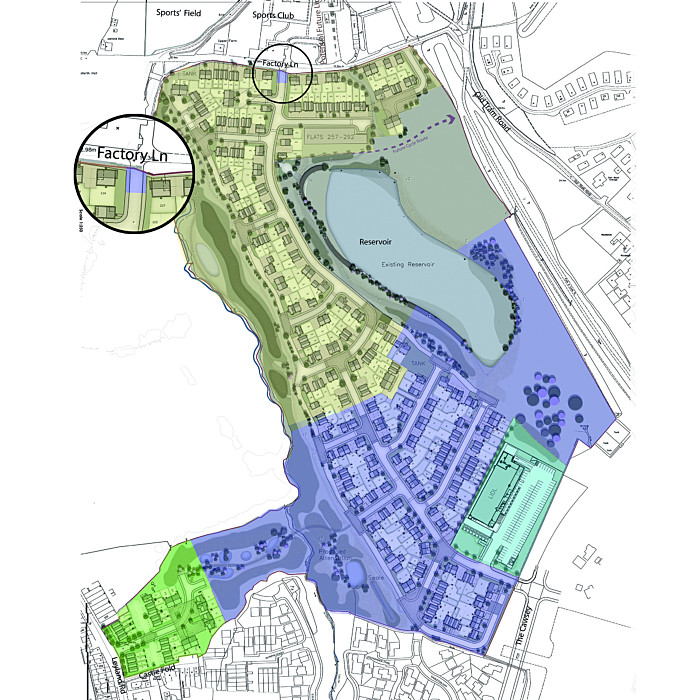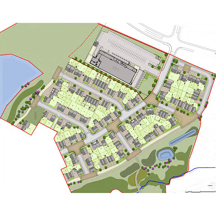 - Phase 1 – 117 new homes and a new retail store at the larger eastern section of the site, and 29 new homes at the western Sumpter Horse Pub site, connected by landscape corridors.