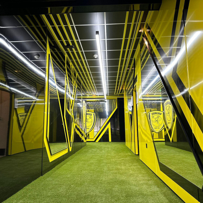 We’re excited to showcase the completed players tunnel and changing room upgrades at Burton Albion’s Pirelli Stadium. Inspired by the club’s rich heritage, the design incorporates elements of the Brewers’ barley and the iconic yellow and black club colours. These state-of-the-art facilities are designed to enhance player experience and performance, with a modern design that supports peak performance and comfort.