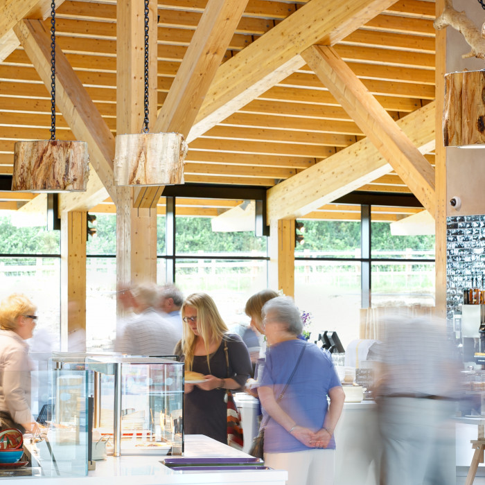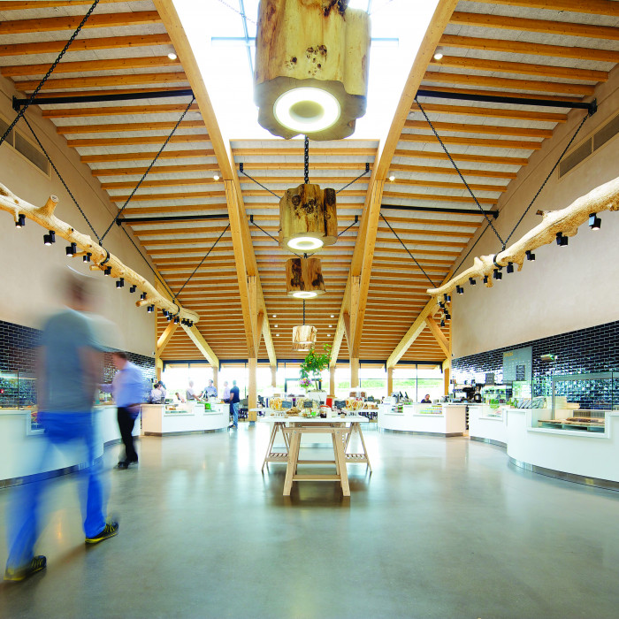 Set between junctions 11a and 12 of the M5, Gloucester Services is far from the typical motorway stop. Built from local stone and timber, with green roofs seeded with wildflowers, the buildings are designed to blend into the surrounding countryside rather than dominate it.
