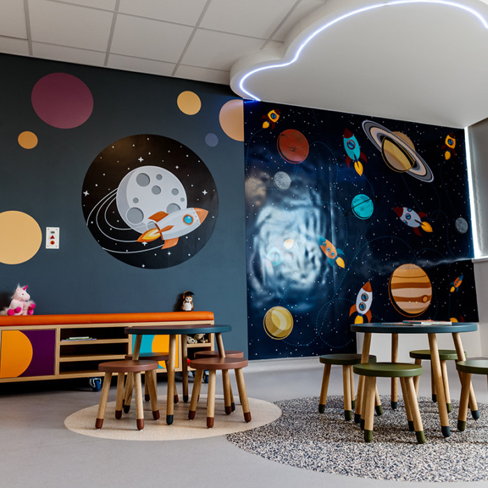 The full development, in its entirety, comprises a new cardiac ward, outpatient and diagnostic department, paediatric intensive care unit, cardiac theatre, catheter lab, ancillary rooms and parents’ accommodation. The co-location of all children’s services brings huge benefits to patients, their families and staff alike, reducing the need for multiple trips, and creating an identity for Leicester Children’s Hospital. The new development will also bring the Trust in line with the new cardiac standards and streamline staff workflows.