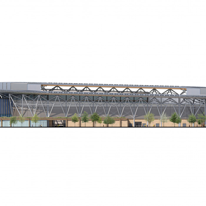 The stadium bowl has been designed as a continuous sweep around the pitch, with a steeper rake than typical, optimising sightlines and atmosphere. Its orientation responds to the sun’s position during afternoon kick-offs, positioning the main West Stand to benefit from the setting sun and enhancing natural light conditions for players and spectators alike.