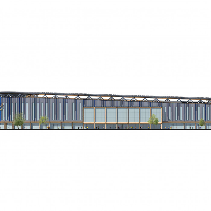 This form allows the stadium to sit harmoniously within the wooded edge of the site while presenting a stronger presence to key approach points, including Kidlington Roundabout and Frieze Way. The hotel and hospitality spaces form an L-shaped block around the North-West corner, designed to work in concert with the stadium bowl. The layering of these elements creates a coherent and visually engaging overall composition.