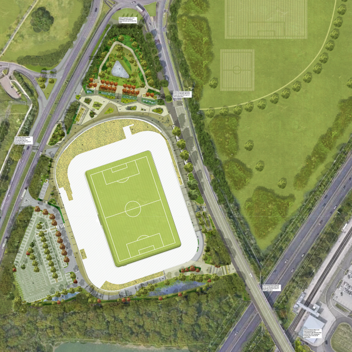 As the first all-electric stadium in the UK, Oxford United’s new home will operate entirely on renewable energy. The design incorporates 3,500 sq m of roof-mounted photovoltaic panels to help reduce demand on the national grid during matchdays. An air-source heat pump and highly efficient building fabric will remove reliance on carbon-based fuels, delivering an estimated 80% reduction in annual CO₂ emissions compared to gas boilers.