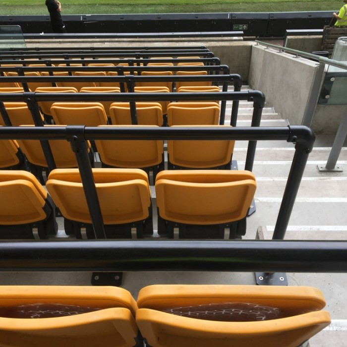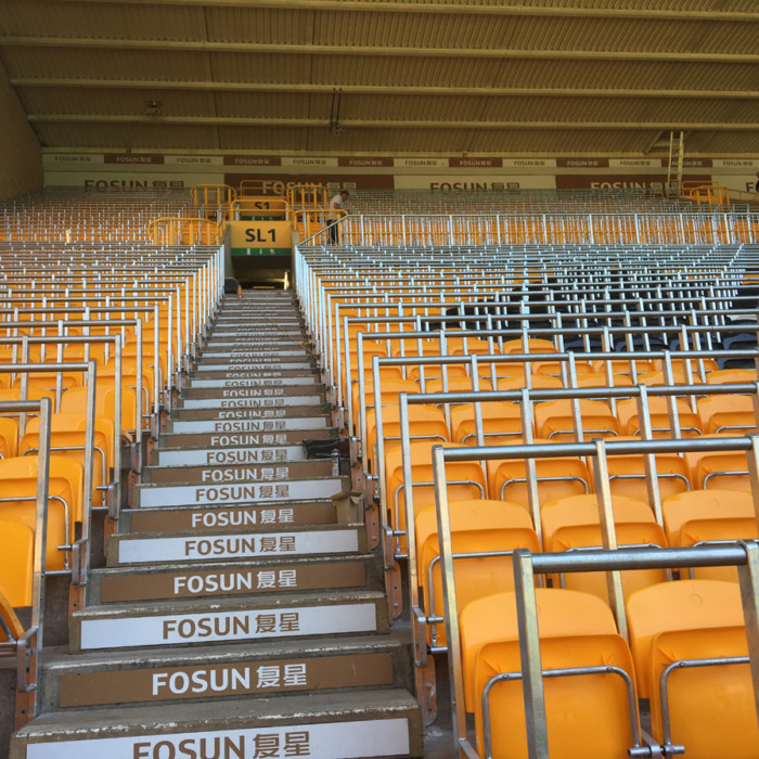 The Sir Jack Hayward Stand (South Bank) of Molineux Stadium now has a barrier seating capacity of approximately 5,550, making it the first whole stand in the Premier League to be installed with barriers. The North Bank has 2,000 seats with barriers. Installation of the barriers further brought a previously unusable wheelchair platform back into use.