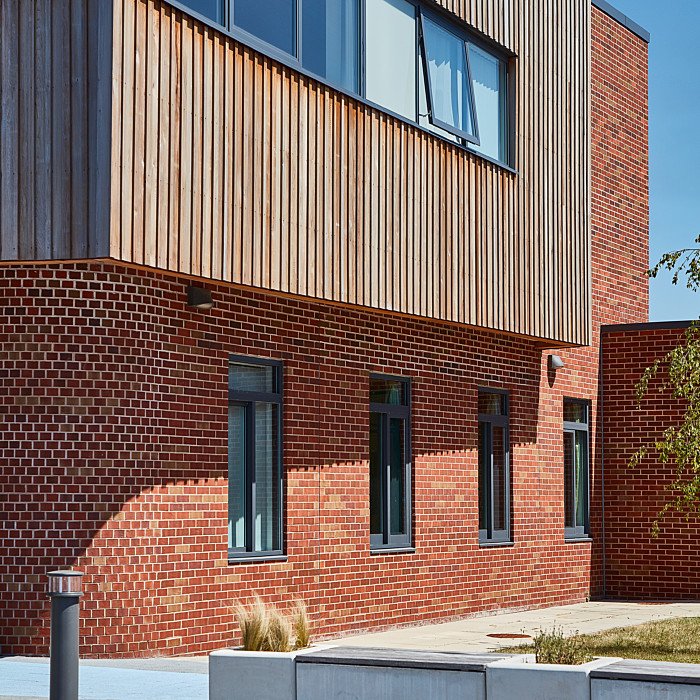 Clinical accommodation is situated on the ground floor, with a maintenance access gantry in the roof void.