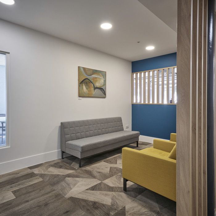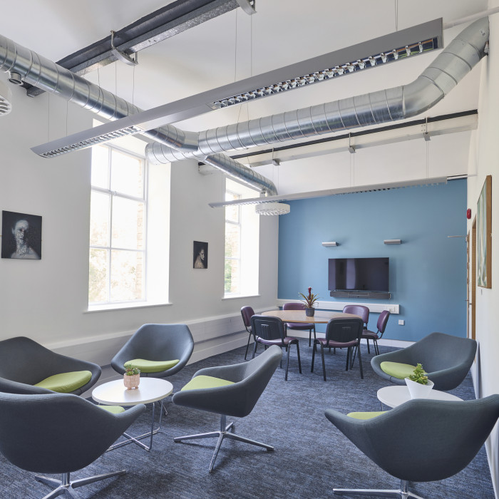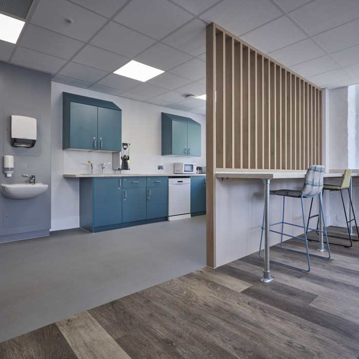AFL’s design team approached the project with a dual aim: deliver a functional, professional clinical environment that meets NHS specifications, while retaining the unique heritage value of the Grade II listed mill building. The Trust was clear in its desire for a work environment that was both relaxed and professional, providing space for private conversations, MDT reviews, and daily clinical admin, without losing the existing charm of the building. The space had to be welcoming and visually impressive, promoting staff wellbeing while remaining rigorously compliant with infection control standards, building regulations, and facilities management requirements.